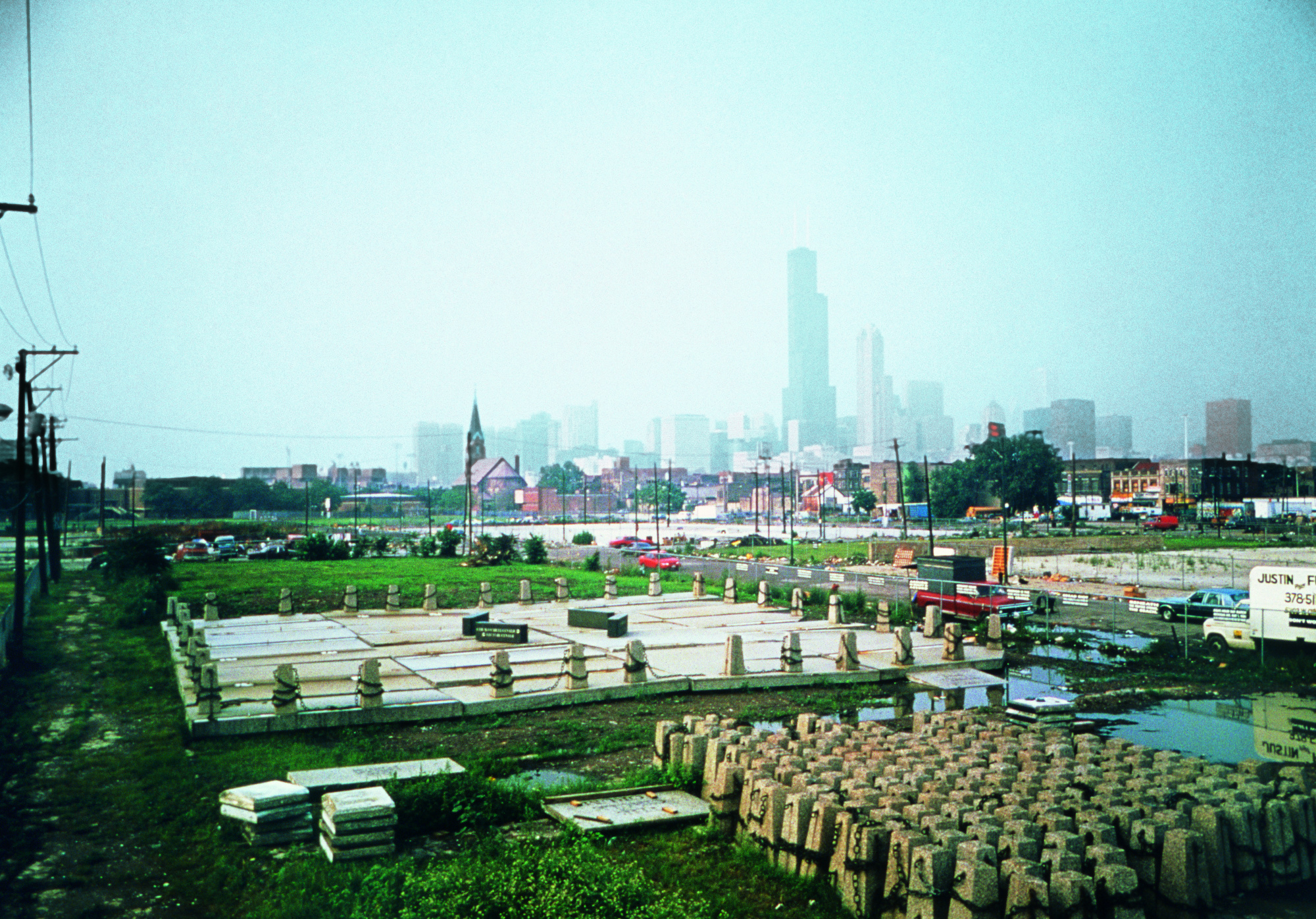 The parade Consequences of a Gesture, at three consecutive locations on 19 June 1993, from 9.30 am to 1.30 pm. The outdoor installation 100 Victories/10,000 Tears, set up in a fenced-in area at West 14th Place and South Peoria Street, near the Maxwell Street Market’s site, July to November 1993.