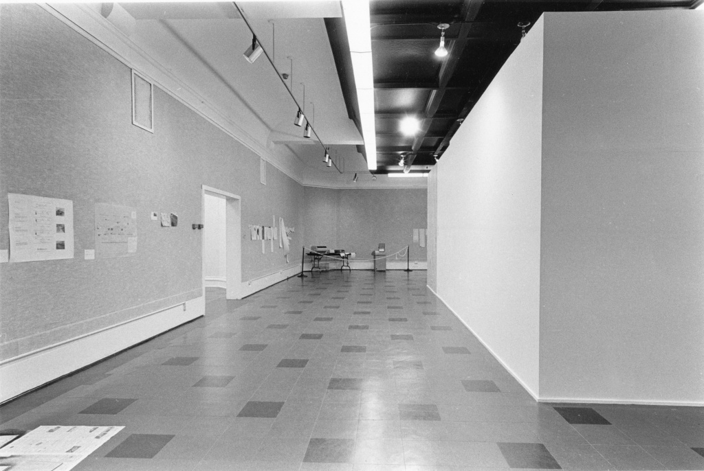 ‘c.7,500’ occupied one gallery space within the Walker Art Center. On the table in the foreground is Mierle Laderman Ukeles’s photo-album of Maintenance Art Tasks (1993), next to an album containing N.E. Thing Co.‘s work North American Time Zone Photo-VSI- Simultaneity (1970). -