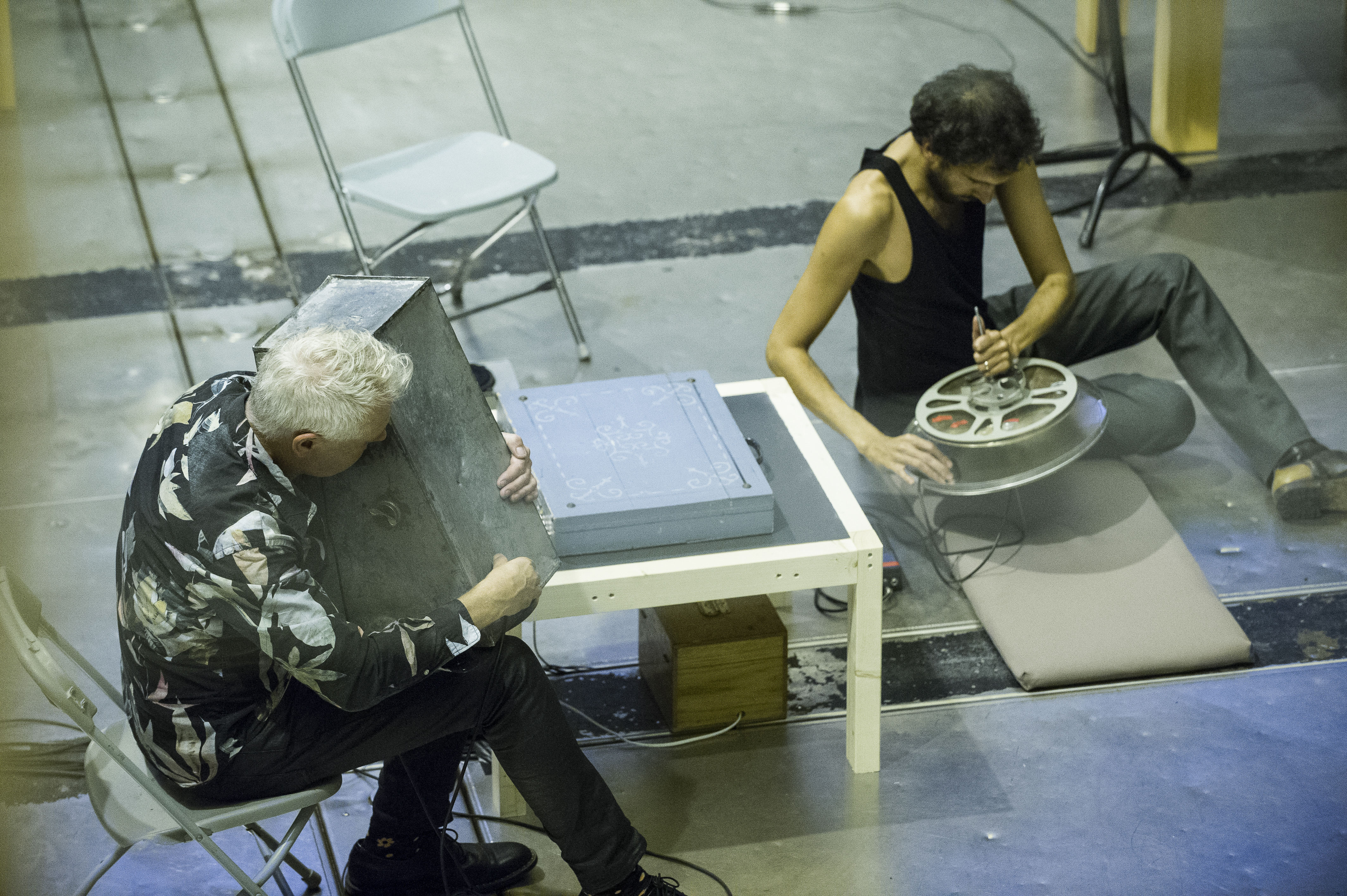 Peter Kates, Tarek Atoui, WITHIN, Instrument Testing, Sentralbadet, Bergen Assembly, 2016. Photo: Thor Brødreskift -