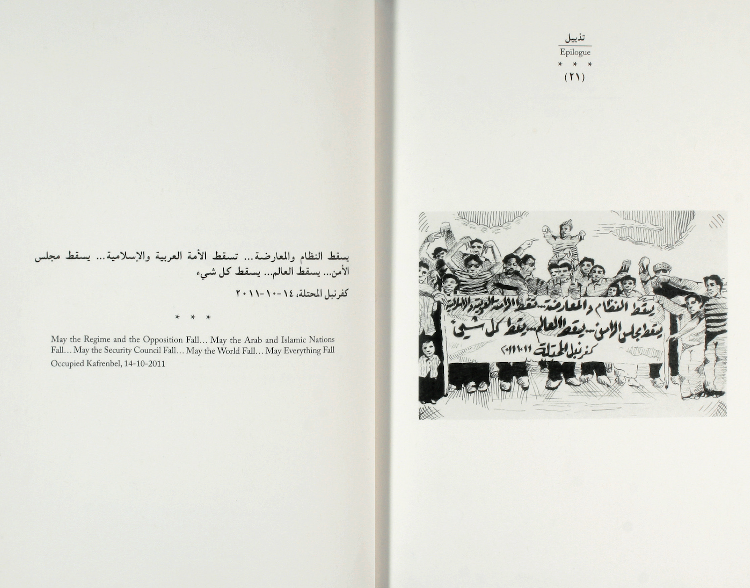 As for witnesses, few of us remain here. Others have stopped believing in this land; many have been lured by the glitter of a successful career and a better life; and some have tried hard but were forced to leave because their lives were in danger. Such is the case, for instance, of the Syrian writer Yassin al-Haj Saleh, who published his ‘Goodbye to Syria’ today, 12 October 2013, on his Facebook account. People leave and we remain; people leave and I remain, and the space in which I’m allowed to move becomes narrower and narrower, emptier and emptier.
