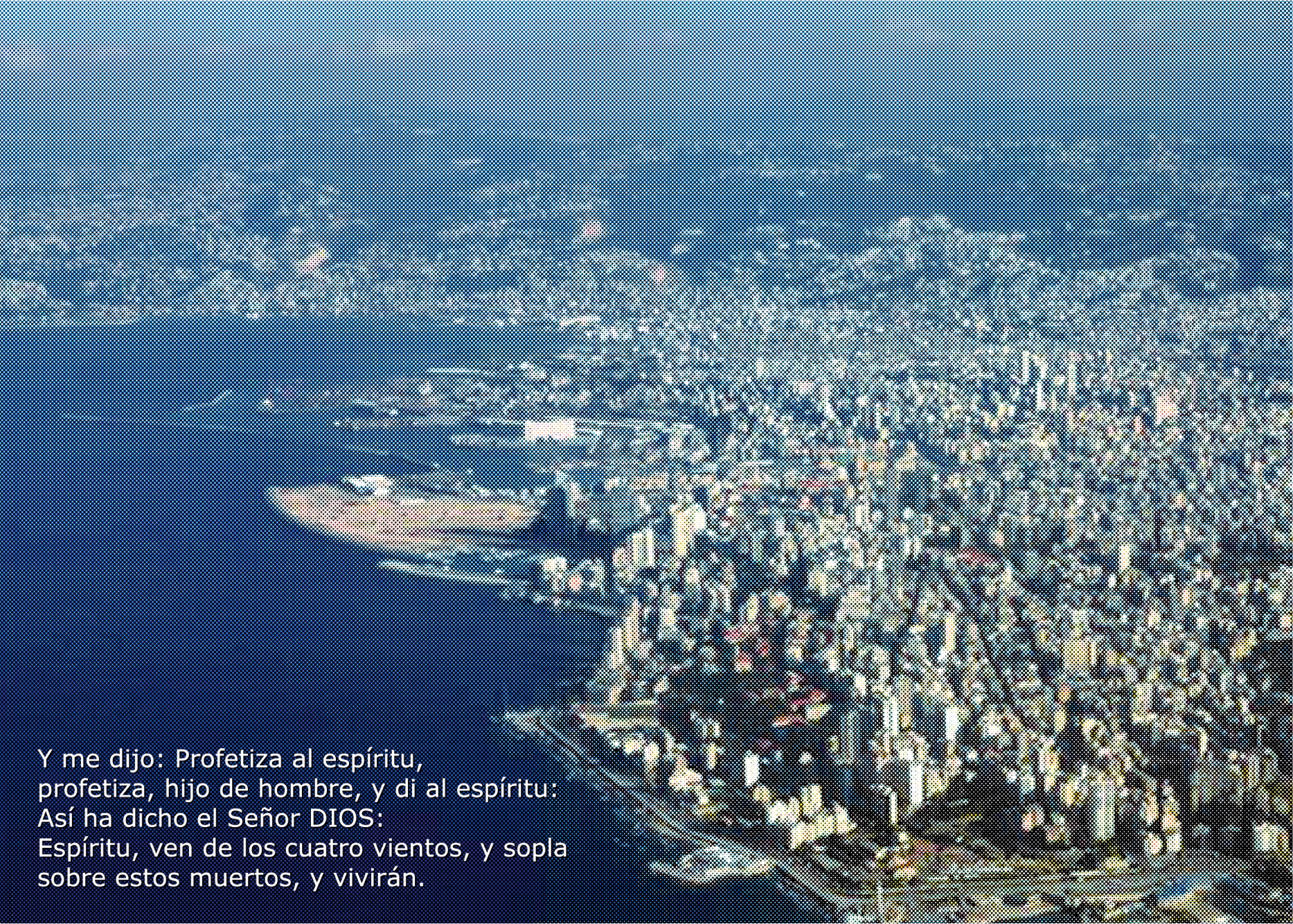 Tony Chakar, An Endless Quick Nightmare, 2011. The image reads: ‘Then he said to me: Prophesy to the breath; prophesy, son of man, and say to the breath: Thus said the Lord God: Come from the four winds, O breath, and breathe upon these slain, that they may live.’